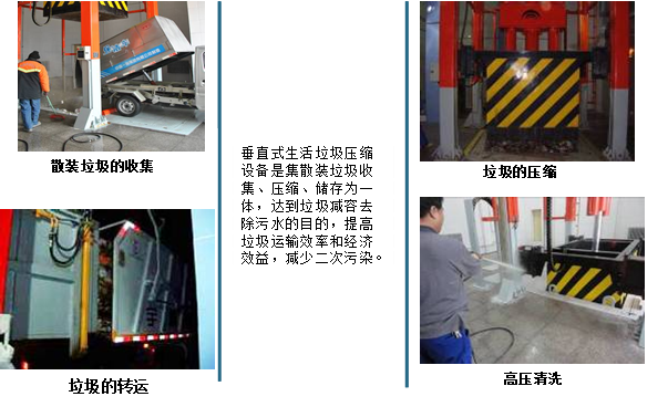 ◇采用垂直壓縮方式,壓縮力大,垃圾塊壓實密度大。